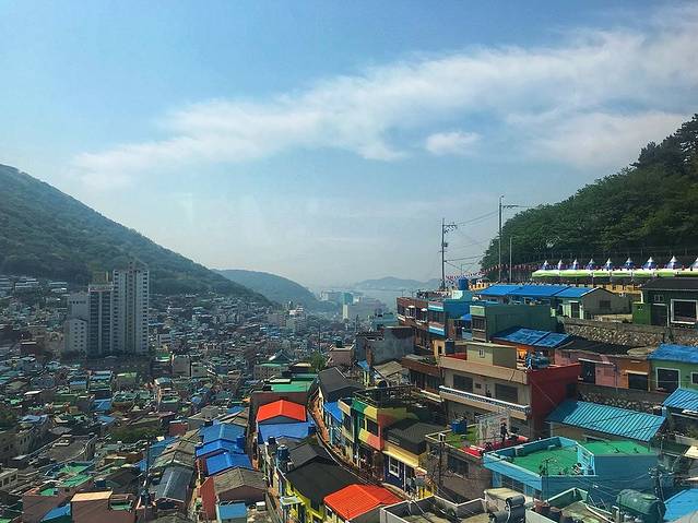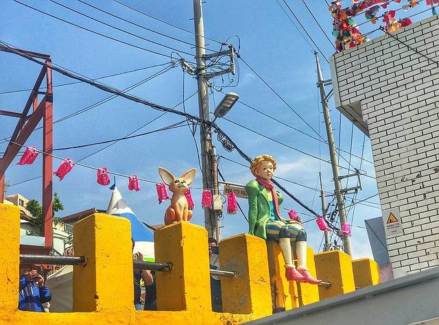 漫步于甘川文化村,你可以随时看到色彩鲜艳的壁画,在展望台上能够看到不远处的大海,听到轮船出航的鸣笛声,在艺术商店里面还可以欣赏购买精美的小礼物。