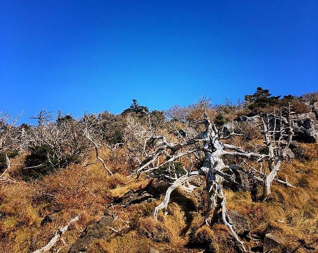 汉拿山海拔1950米,是韩国第一高峰,也是一座休眠火山,随海拔升高垂直分布着2000余种植物和4000余种动物,具有火山、河川、湿地、冰缘、风化侵蚀等地形,山顶是因火山爆发而形成的火山湖“白鹿潭”,堪称一个生态王国。