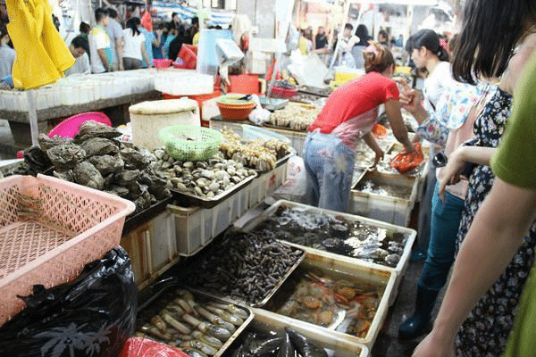 来到 三亚 不吃海鲜,那不是暴殄天物么~亲自去附近的水产超市买了基围虾,扇贝,鲈鱼,然后拿到餐厅给加工了,好期待~因为来过上次三亚到第一市场吃海鲜已经轻车熟路了。