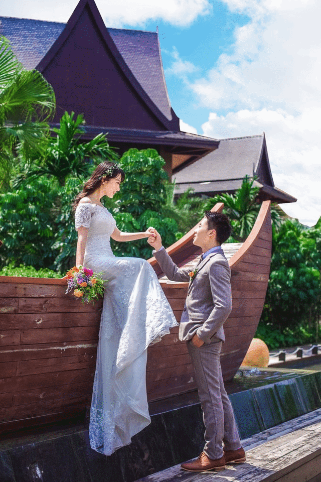 后话:虽然此次最重要的任务是拍婚纱照,但是我真的建议大家不要来 三亚 拍了,还挺糊弄的,照片的拍摄、选景、选片、后期过程都不是很畅快,除非大家可以选取大型的连锁品牌, 三亚 当地的婚纱照工作室就不要选了。去之前,告诉我他们有一个别墅,里面有各式各样的内景,结果,呵呵哒,一共大概3-4个场景吧,1个假钢琴,2个背景场景,1个幕布,所以我没有在 三亚 拍内景,回 北京 以后又找了施华洛拍2套服装的内景。所以此次婚纱照严重超预算,已经过万了。衣服的选择也不是很多,我的第一套一字领婚纱是自己的婚纱,幸好带着了。希望此次的 三亚 婚纱照之旅能或多或少帮到大家~写的辛苦,感谢点赞