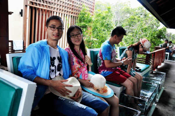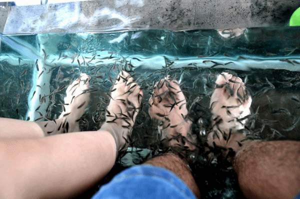 走着走着实在是累了,在山顶发现一家鱼疗店,果断过去休息了一把,小鱼戳着脚面很是舒服和放松,25元/人/20分钟,其实就是时间到了,老板也仍由你就这么坐着休息。