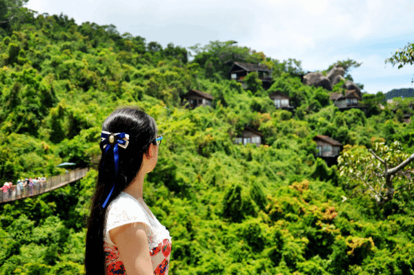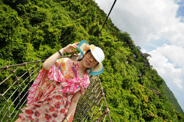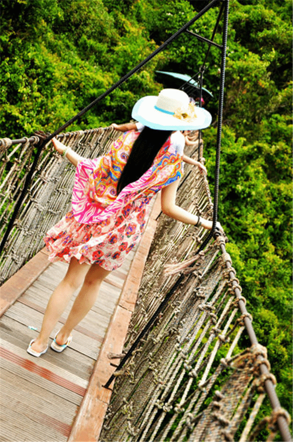 第2天亚龙湾 森林公园好好的睡了一觉,补充了体力,又是阳光明媚的一个早晨,我们今天的目的地是 亚龙湾 热带天堂森林公园,特别想看看舒淇走过的那条索道,也想看看非诚勿扰到底给这片森林带来了什么。坐上了27路,路程比较远,大概是1个小时,到加油站下,往回走200米右拐就能看到一个坡子,上去就是西大门,购票换票都在这。景区里边分车行游览线路和步行游览线路,进去就是排队坐观光车,并且第一站只能通过观光车到达,车子在起伏的山路行上串下跳,大家一声声的惊呼。对面来车的时候,不约而同的大喊一声,很是带劲,也很 三亚 的感觉,让人有种提神醒脑的感觉,一下子会恍惚忘记来之前的事情。躲在树林中的小路
