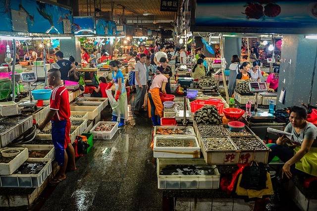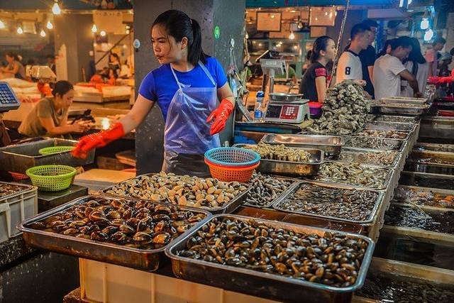 以买海鲜买水果,另一部分就是伴随而生的海鲜加工饭馆。买海鲜的经历非常餐厅,对于平时不买菜的我来说,这个环境真心非常恶劣。满地都是脏水还有飘着的腥味。而且赶上下雨,大家都拿着伞,市场里人也多,你蹭我我蹭你。我俩还是经验不足,买的太少了。只买了基围虾、和乐蟹还有芒果螺。第一市场坑人现象非常严重。我们买了虾特地让卖家把袋子扎破放水。结果拿到饭店加工的时候,饭店的服务生愣是放掉了半斤水!!虽然比较郁闷,不过还是很新鲜的,特别是螃蟹,个个有黄。芒果螺经过加工更是无比鲜美!只可惜买的过程太艰辛,不然真的应该多买点。