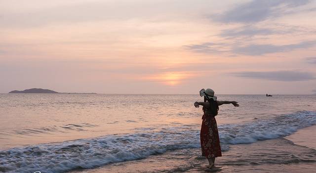 逛完回酒店拿了泳衣就去了大东海。本来以为这天儿刚下过雨人不会多,结果沙滩上都是人。下过雨后天上云朵,一点都不晒。酒店有自己的一片区域,有遮阳伞和躺椅。伞和躺椅都是各酒店的,所以如果不是酒店住客,都要交钱才能用。躺椅好像是100一张,够贵的了。反正就是冲淡水啊,储物箱啊换衣服啊都要花钱就对了,在沙滩买的冰淇淋和啤酒都是外面的两倍左右吧。
