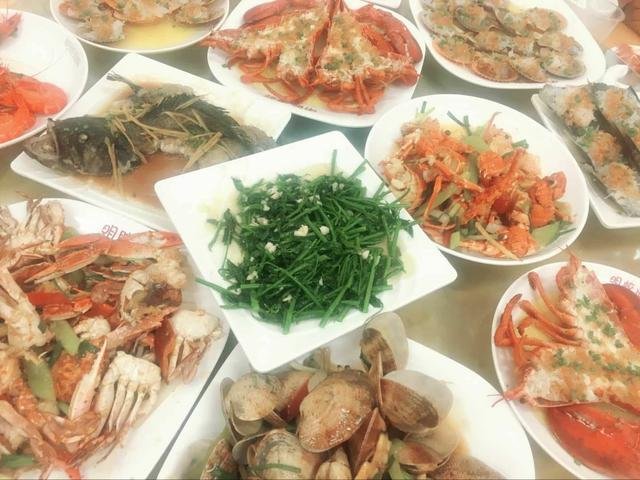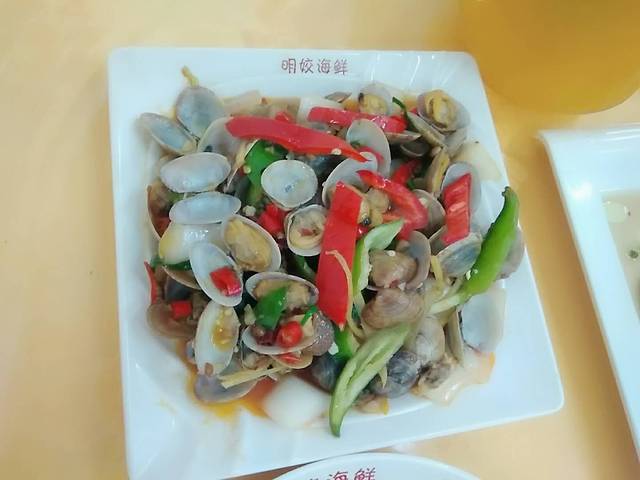 在第一市场满载而归后,开始在附近找海鲜加工店。期间不时有上来递名片拉生意的,都没有去理睬。加工店有好有次,也有不少做一竿子买卖的店,时有海鲜被掉包、实际价格和标价不一致的情况发生。之前在一些攻略里看到过几家评价相对高的,以明姣海鲜尤甚。最后又在同一条街上找了明姣海鲜加工店,也是因为之前在微博上搜索的时候有看到过别人不错的评价。