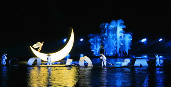 现场游客有4500人,歌声嘹亮,场面壮观。一场盛大的大型水上实景演出。