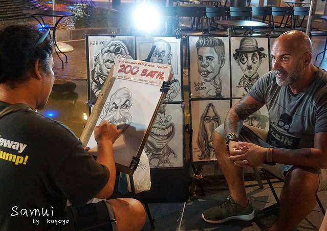 每周六周日在Central Festival前的广场有为客人作讽刺漫画的艺术家。温馨提示:请正视自己的所有瑕疵,他并不会美化你。