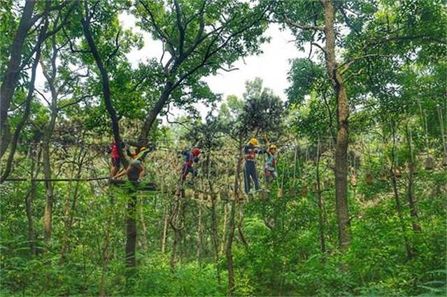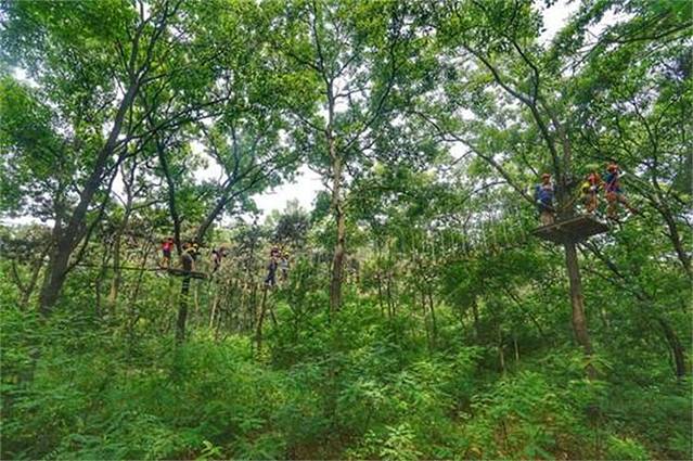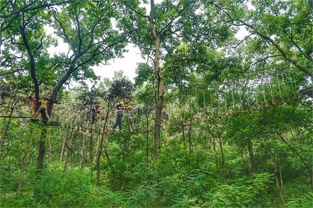 再往里走就是茂密的森林,这里有很多娱乐设施,还有教练在旁边指导,像是在拓展训练一样。这些设施都是免费玩的,只是保护设备需要收费,大家都玩的很嗨。