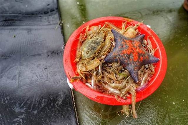 任家台之前是个破破烂烂的小渔场,现在修建的相当气派,有停车场还有海鲜市场。出海捕鱼的人还不少,现在已经成为了游客的体验项目了。