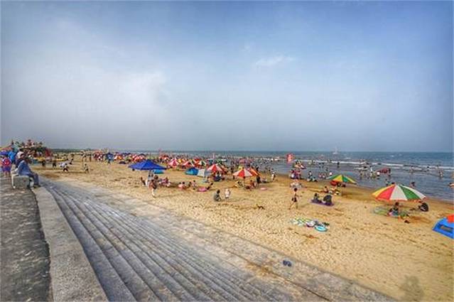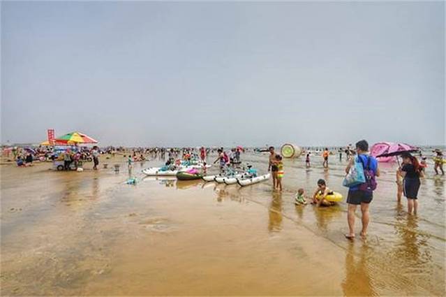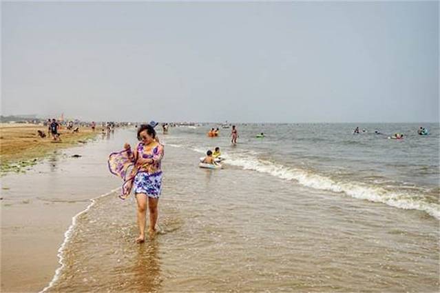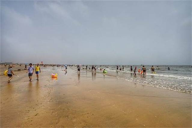 大沙洼海水浴场离吴家台非常近,虽然海滩上停车不收费,但也没有开车的必要了。出门的时候太阳已经没有那么毒辣了,不过防晒工作还是要做好的。还不到盛夏,沙滩上的游客已经很多了,这个时间也是来海边最好的时候。