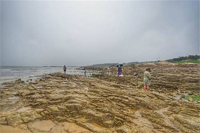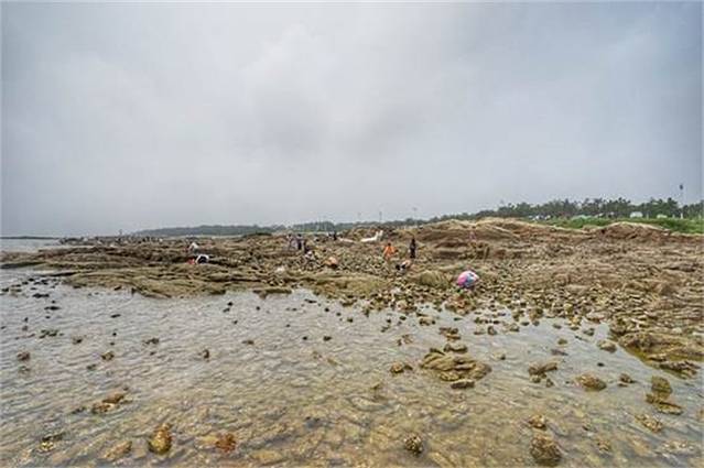 紧邻海水浴场的是一大片礁石滩,退潮之后的面积巨大,是一个赶海的乐园。想想住在这里也真的是很幸福,出门就是乐园,一定给生活增添了不少乐趣。