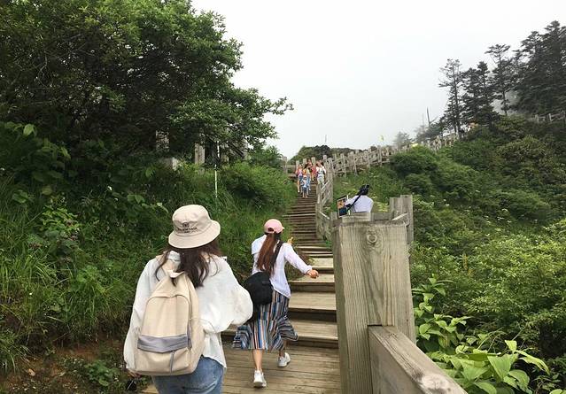 其实最重要的是鞋子,建议穿一双高帮的鞋子,登山鞋什么的最好了。因为要登山、不停的走路,所以选择一个舒服的鞋子十分关键。这是知识点!