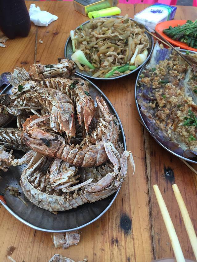 桥港是个小吃街,因为临近越南,所以街上还会有很多越南小吃,24幢和港湾糖水是两家糖水做的特别好吃的店,还有一家越南卷粉,虾仁馅的也超好吃。我们走到了离码头比较近的海鲜大排档,准备吃吃地道的当地海鲜,老板说:每天的海鲜都是码头头一波海货,为的就是让食客尝到大海最新鲜的味道。人均大概在80一位,墙裂推荐椒盐皮皮虾,还有香辣蟹...