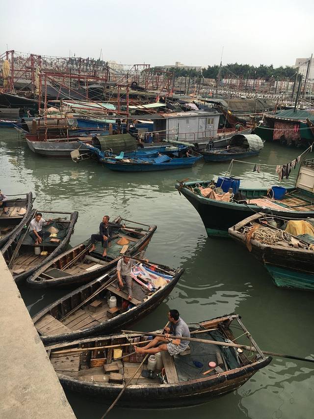 桥港是一个码头,停泊了很多渔船,来往的渔民都是会在船上生活,几乎船上放着他们生活的一切东西,有些老渔民会把所有的家当全放在生活的船上,我看到很多渔民在码头缝补渔网,在船上开火做饭,一艘船就是他们生活的全部。