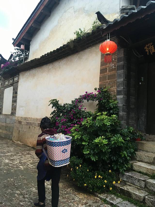 清晨七点的丽江只有偶尔两三个早早起来拉着行李箱不知又要赶去什么地方的游人,剩余的就是在路边买早餐的小铺子或者是小摊,很是静逸。