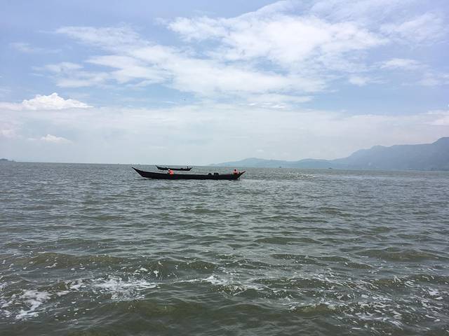 拉市海、远山和蓝天白云。在这样的海上划船,真的是一种不同享受。