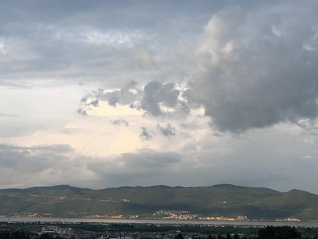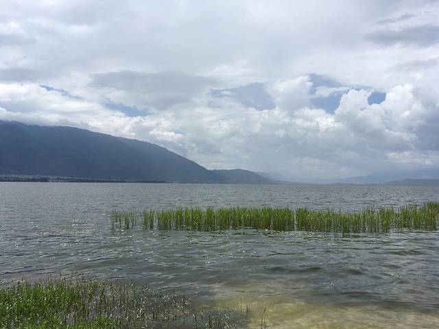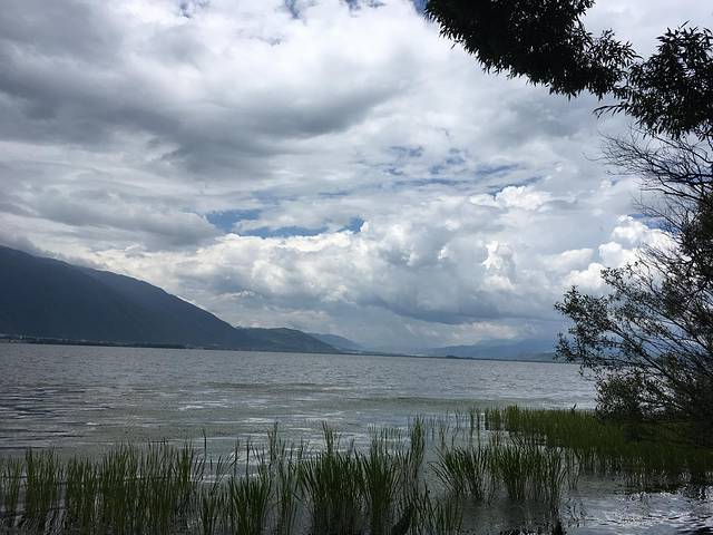 中午时分,我们出发前往大理古城。司机是客栈阿姨介绍的,约好两百元包半天车,带我们一路玩到古城。双廊到高速口的道路据说维修了两年也没有修好,非常泥泞,在这个每天都下雨的季节,更是处处是深坑。前一天我们来的时候,才差点被滴滴上找的包车司机丢在路边呢。好在阿姨推荐的司机人很好,并没有啰嗦什么,而且还一路解释说这个路怎么会是现在这个样子。刚出双廊就下起了大雨,司机说不必担心,大理的雨都是一片一片的下,等我们到得古城不见得还有雨。原本打算看看蝴蝶泉,因为爸爸妈妈年轻的时候看《五朵金花》印象深刻,但是司机说现在的蝴蝶泉只有蝴蝶的标本了,而且车到蝴蝶泉的时候,正好下着瓢泼大雨,我们便继续赶路了。风景都是很缘分的。经过喜洲古镇的时候,正好天晴了,司机推荐我们趁着天晴先去海舌公园,于是我们往前奔去。而待到从海舌公园出来想回来游览喜洲古镇的时候,天又下大雨了,小朋友因为在海舌公园玩得太尽兴而在车里睡着了,所以喜洲古镇也只好遗憾错过了,当然这是后话了。