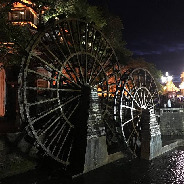 到了酒店以后已经是傍晚了,躺下好好休息一下,然后在路口的阿巴吧吃个地道的云南菜后就到古城里逛游了。晚上古城里的游人真的多,最有名的五一街和四方街上游人如织,真的很难走得动啊。就是这样紧挨慢挨用了个把小时才走到了大水车。古城很大,路上的人无论是看着才出门的还是正要找回住处的都拿着手机转圈呢。有了手机真的很方便呢,但是现在想想也少了一点发现意外之喜的可能呢。