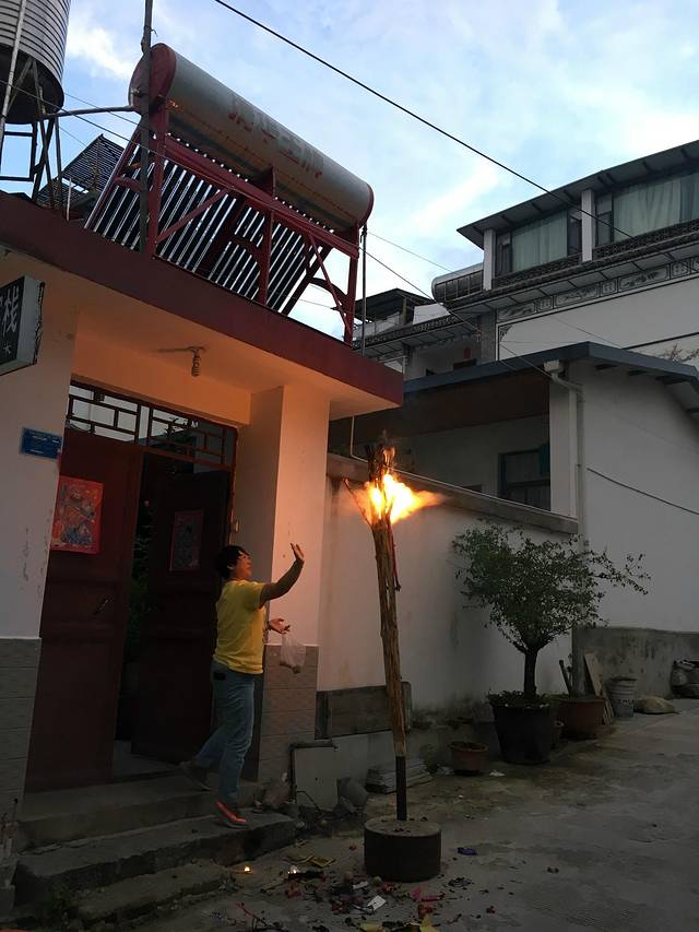 当地人还热情的邀请我们也在她家门前的火把上撒一把香呢