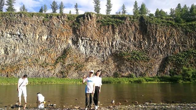 16:30左右到达第一个景点,山水岩壁画,熔岩面积20公顷,虽然看起来不那么长。在河边可以骑马,在河边骑马10元,在河里骑马20元,打了一会水漂,捡了心型石头,捉了一会鱼,照照风景,惬意的生活