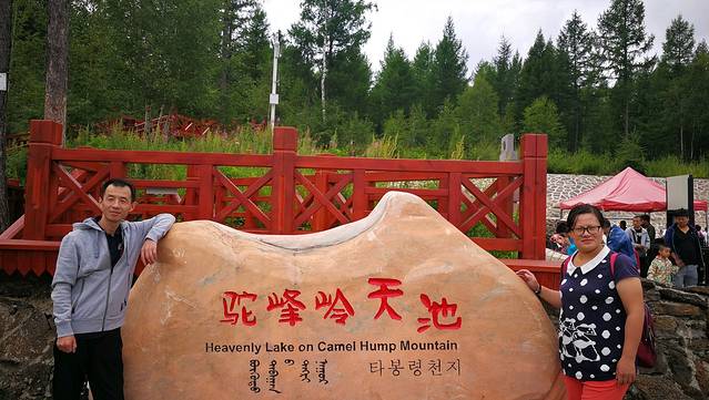 到了天池,旁边有一只“四不像”,十元钱,很重的味道,很多人排队照相,凑热闹的风景比观天池的人还多。