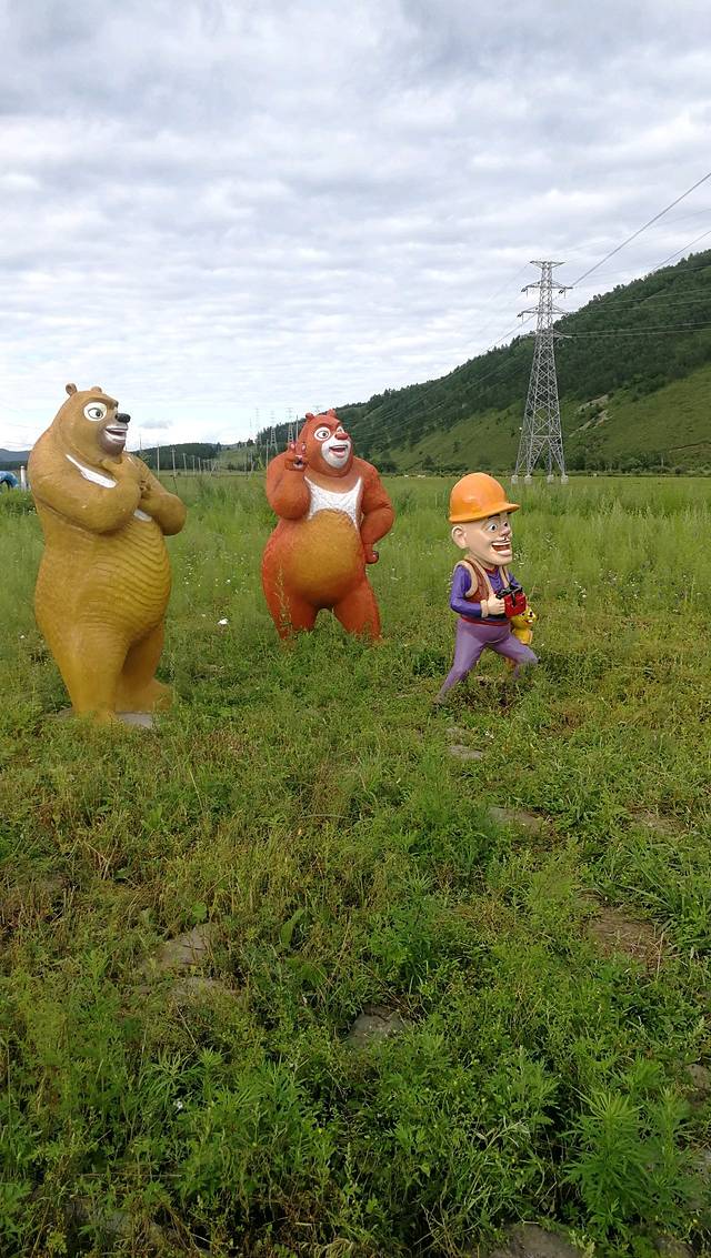 吃饱饱以后,继续朝着目标出发,方向柴河月亮小镇,开车一个小时左右休息,邂逅熊大熊二光头强