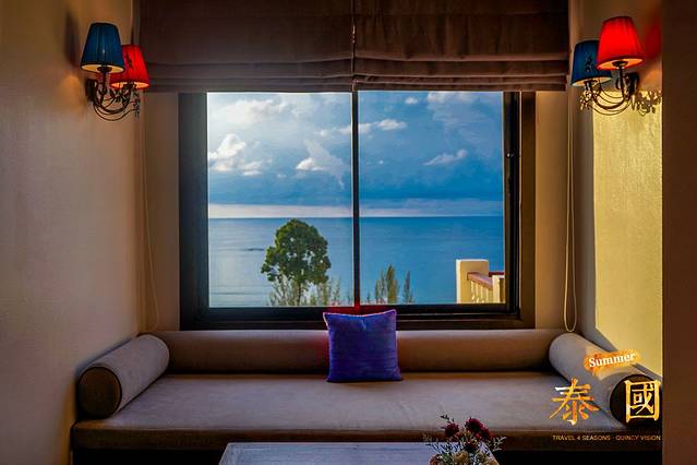 这次我入住的是别墅套房,躺在床上就能欣赏到海边的美景。