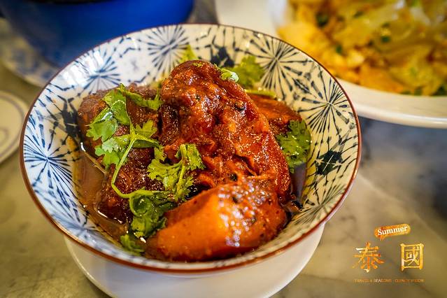 必点的镇店之宝是祖传3代的普吉红烧炖肉(Phuket Local Stewed Pork),口感软润,肥而不腻,汤汁拌饭,回味无穷,265泰铢的价格也十分亲民。就凭这个味道和价格,足以让普吉镇方圆5里的小猪们躲在角落瑟瑟发抖。
