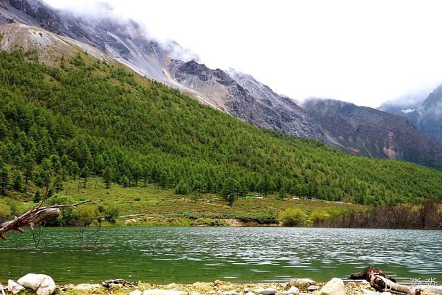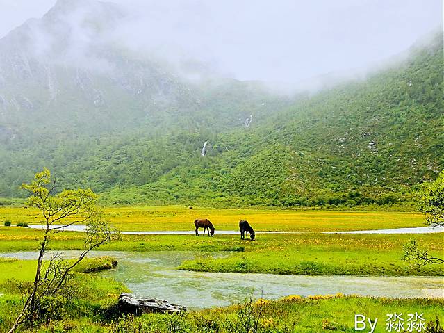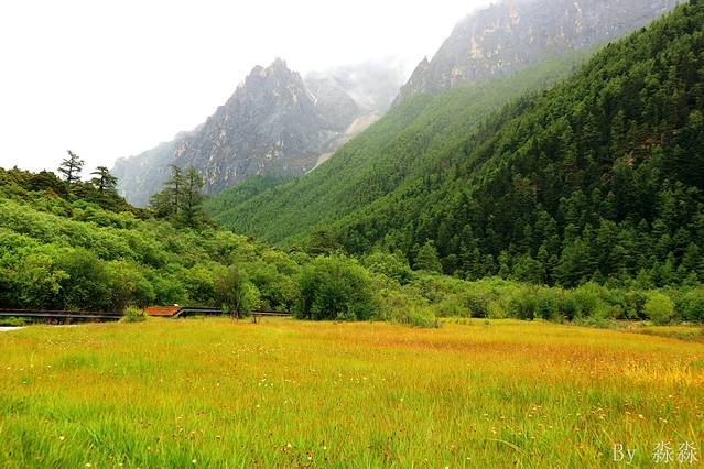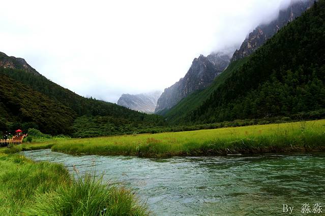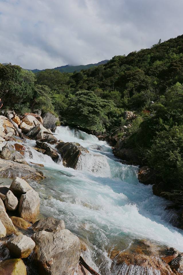 八点从稻城出发,两小时以后到了亚丁。取了票,乘坐景区观光大巴,一小时。也就是说,当我们真正从景区步行开始的时间,是中午接近十二点。为了第二天不再一次这样麻烦和奔波,我们一路都在赶,竟然也没有什么高原反应了。通常游客们把稻城的景点分为长线和短线,如果我们不是八点出发而是六点,那么一天绝对足够看完所有的景点。我也不至于因为没有看到短线而有点遗憾。我们是从冲古草甸开始的,也是那里,是到洛绒牛场的观光车的起点。在看到最远的景点五色海大约9公里之后,我们竟然妄想走路往返。于是我们开始赶。