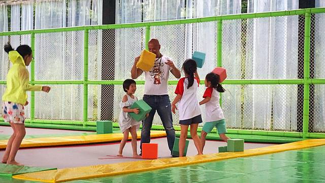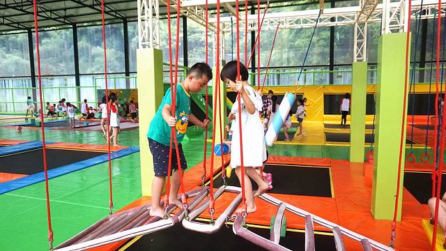 蹦蹦床是大人和小孩都可以玩的,里面还有一些小孩子的玩乐设施。这里的孩子王是我们的国际友人Dino,带着小朋友们打篮球攀爬,看到孩子们脸上灿烂的笑容就知道这里有多欢乐了,开心不分国界,如果英语不错,还可以跟Dino英语交流哦。