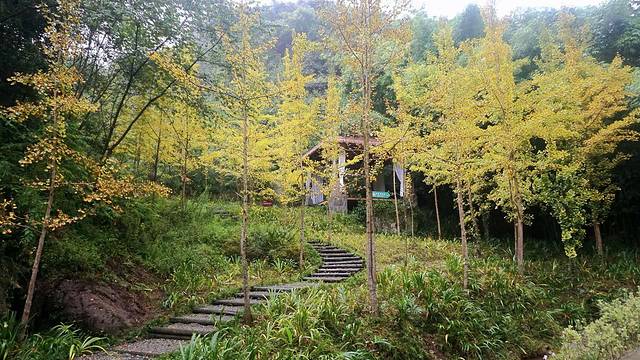 清晨,从鸟儿欢快的鸣叫声中醒来,“鸟鸣山更幽”就是此时此刻的写照。 “山中习静观朝槿,松下清斋折露葵”,在已泛黄的银杏林中的木屋,静下心来,呼吸新鲜的空气,晨练瑜伽,静的惬意。