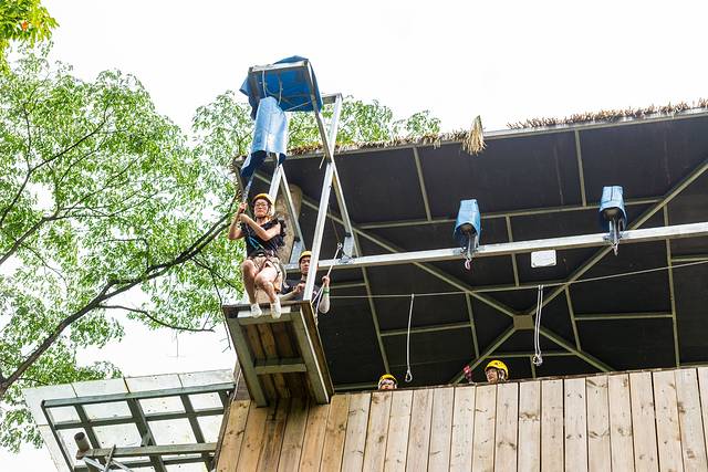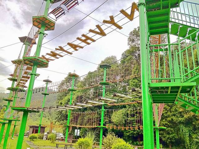 小朋友做手工的时候,我们来到了狐巴巴冒险园开始刺激到让你心跳的树顶飞索,树顶飞索一共有三根绳索,飞掠空中的感觉超棒。