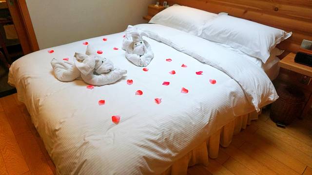 打开房门,粉色的玫瑰花瓣与两只可爱的小动物立马吸引了果妞的眼睛,兴奋的像一只扑闪着翅膀的小蝴蝶。