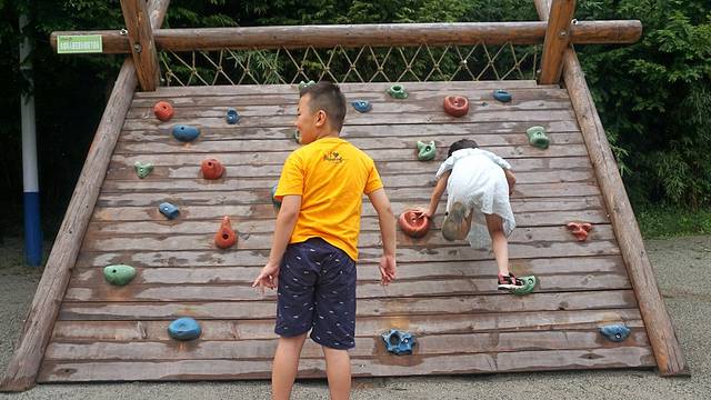 自由落体与攀岩项目在一起,4米高空的自由落体你敢来吗?小朋友的体重需达到40斤才可以玩这个,站在高处俯瞰,内心的恐惧感骤升,迈出最后一步需要莫大的勇气,请忽略我失控的表情。