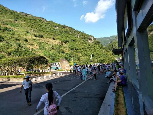 从售票大厅一路往景区入口走,验票后,刚刚走进去,就看见许多的人在清凉透明的河水中玩得不亦乐乎。还有一只小狗狗在河里使劲扑腾撒欢。