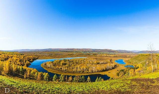 秋日的阿尔山层林尽染,向你展现无穷的色彩:黄色的桦木林、绿色的林间草甸、红色的杜鹃灌丛、黑色的火山熔岩、湛蓝的湖水……而这一切,都反射着金色的秋阳。