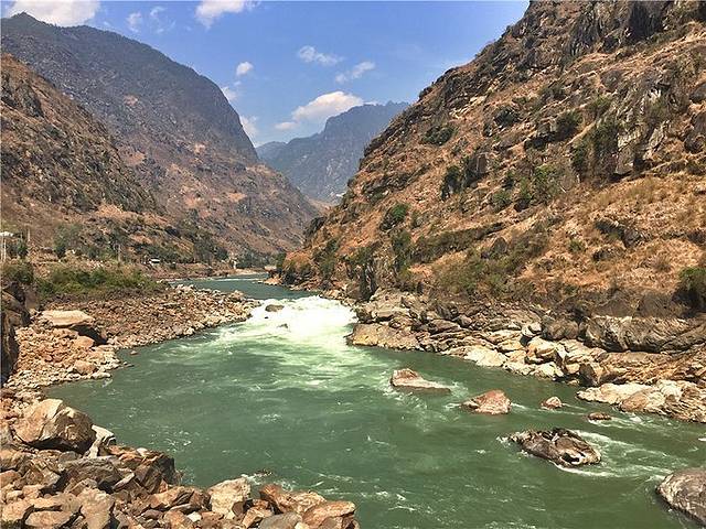 丙中洛风景区,门票100元/人,内有国家级4A景点3个:怒江第一湾、石门关和丙中洛田园风光。气势磅礴、风光旖旎的怒江第一湾则是其最大的看点。全长1540公里的怒江自青藏高原穿山越谷而来,在滇藏交界处的云南省贡山独龙族怒族自治县丙中洛镇日丹村附近受到大山的阻隔,江水的流向从由北向南改为由东向西,流出300余米后,又被丹拉大山挡住去路,只好再次调头由西向东急转,在这里形成了一个半圆形的大湾,被称为怒江第一湾。