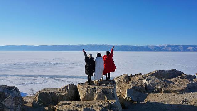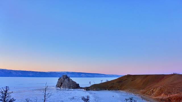在冬日的 贝加尔湖 需要做的事:坐在悬石上看夕阳把冰面染上绚橘的颜色;躺在透蓝的冰上听冰裂的声音;在寂静的夜里,看 贝加尔湖 上空灿烂的繁星…