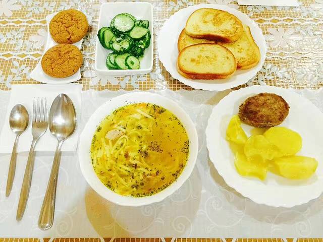 我对吃这块不是很讲究,但是作为 四川 人, 俄罗斯 吃的我不是很习惯,后来我们去超市买食材自己在青旅做来吃,不过奶制品和冰淇淋还是不错的。附上几张吃的图。