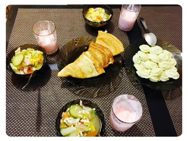 以下是岛上 俄罗斯 大妈给我们做的早饭。