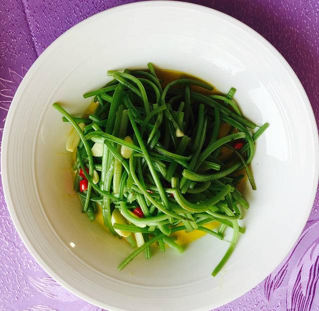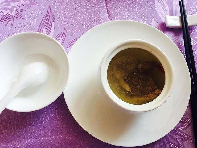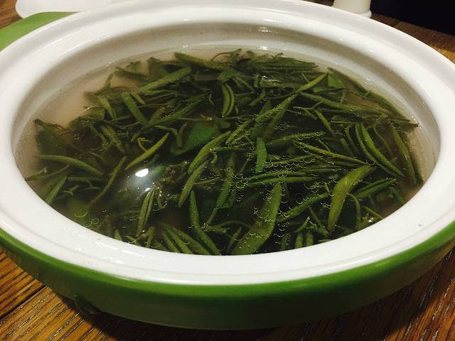 外形酷似茶叶,听说是一种太湖里草做的,口感有点像木耳菜黏黏的,做成汤味道很是特别。
