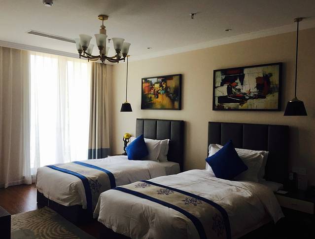 太湖离苏州市中心有点小远,距离市中心大概30公里,开车大概一个小时左右,远离城市,便能享受慢节奏的那份清静。经过舟车劳顿,中午时分到达入住的渔洋码头•湖驿酒店,办理入住时酒店大堂端上来的一杯柠檬水,瞬间把我从室外的骄阳中清凉下来。来到房间,一股沁人心脾的芳香扑面而来,原来管家早早的在我入住的房间里点燃了精油蜡烛,欢迎水果及精致的果篮也感受到了酒店的热情。蓝白配色的主色调充满了度假风情,深得我心。