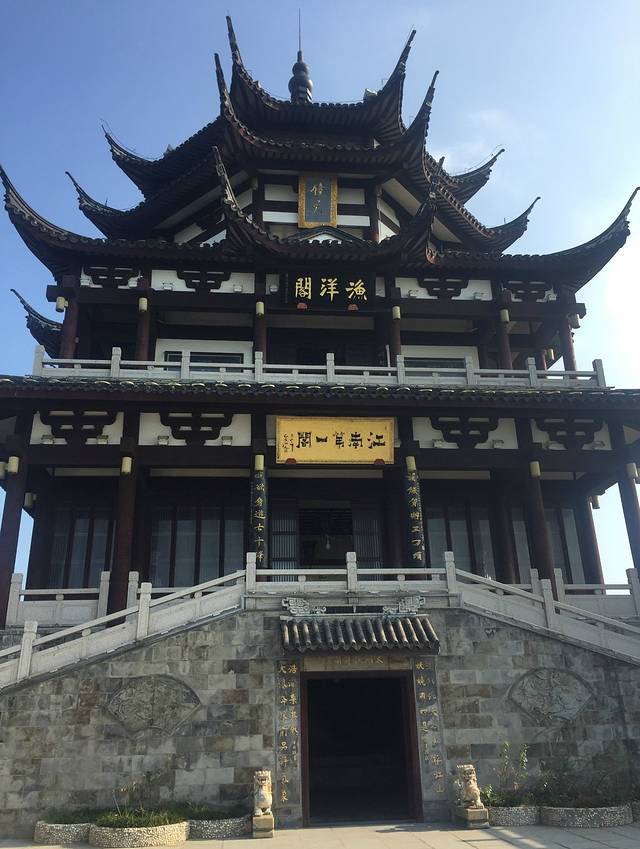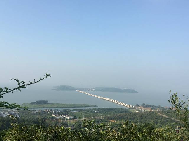 登上渔洋阁,俯瞰太湖,远眺东山岛和西山岛,白色的跨湖大桥像条白玉带般横亘在太湖之上,煞是好看。