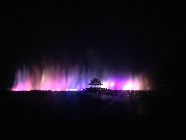 在酒店吃完晚餐,开着车去太湖边消消食,来得早不如来的巧,刚好碰到太湖广场在放音乐喷泉,人潮涌动。虽然音乐喷泉的灯光颜色和喷射姿势有点辣眼睛,但人家诚意很足,忘我的放了半个多小时之久。重!点!是!太湖的晚风完全让我沉醉其中不能自拔。即使喷泉结束,人群散去,我恳求小伙伴在太湖边多待会儿,谈人生,谈生活,更重要的是享受和太湖风谈情说爱的过程。