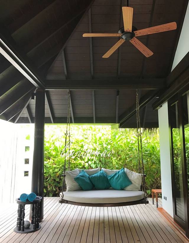 AKV的水屋都修建在泻湖上,所谓泻湖就是海水浅蓝的,个人感觉很漂亮,缺点是没有鱼群,只能偶尔看见几只叫不出名字的鱼类游来游去。而如果海水是深蓝的,和我们平时看到的海差不多颜色的,那就是有珊瑚礁的,鱼就会很多。所以这个需要有取舍,是要看漂亮的海水还是要看鱼,总之我很满意水屋。