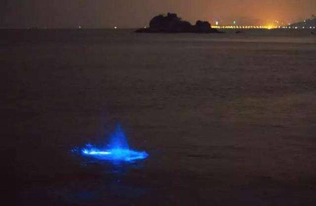 6-9月的夜晚,在花鸟岛周边的海岸线上常会出现大片蓝色荧光海,这也是一种奇妙的体验吧。通常意义上荧光海是由发光浮游生物形成,实际上是一种生物发光现象。花鸟岛荧光海滩,极大可能是栉水母因素。