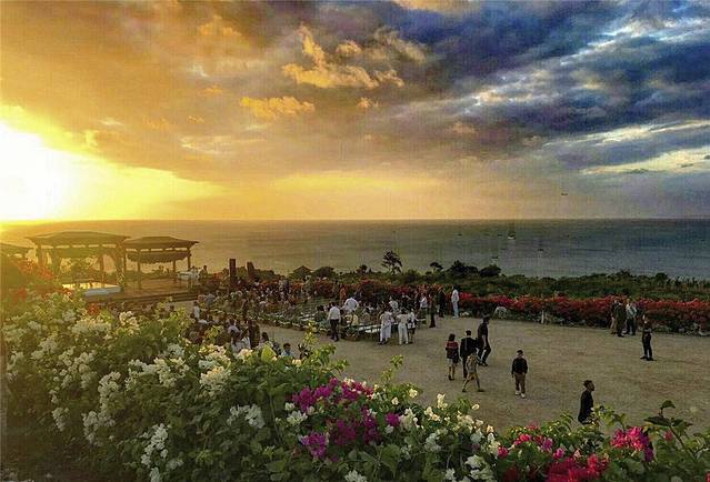 【海景花园婚礼】:私密性最好,场地开阔,宾客数量一般不受限制,花园和海景结合的场地适合各种风格的婚礼主题,花艺设计搭建有很好的发挥空间。相比于酒店内部的场地,海景花园晚宴活动的节目比价自由,不必担心酒店限制音乐,时间,可以到很晚。