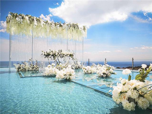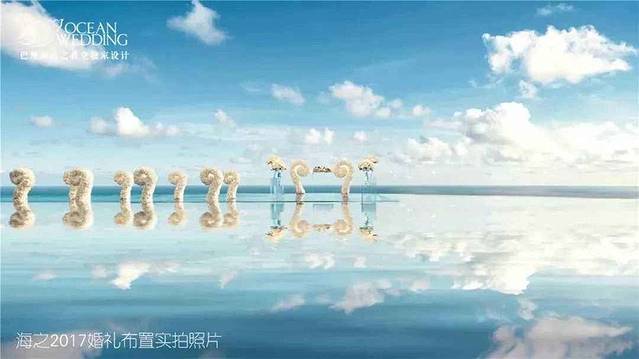 【水台婚礼】:简约为主,主要是景观是海天一色,适合宾客较少的新人,不能做太多布置和婚礼主题设置,宾客人数在2-20人左右。