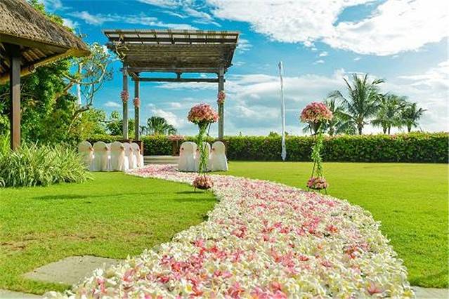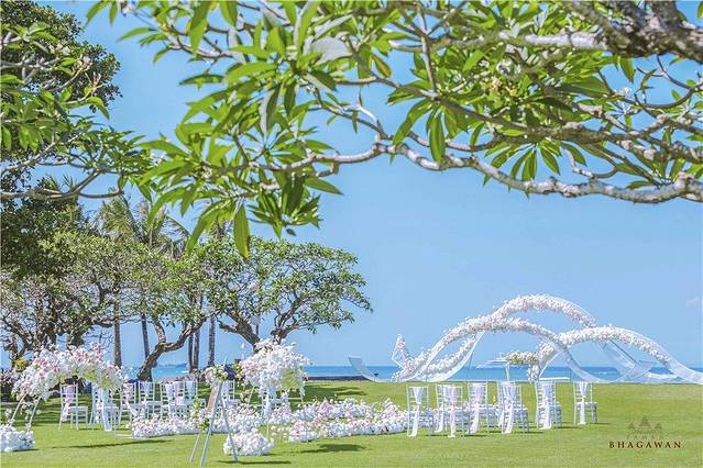现场布置和花艺是一场婚礼的灵魂所在,决定了你的照片、视频效果及婚礼的档次,所以这个环节一定不要太随意。当然,巴厘本身的美景已经很漂亮,在大多场地都有自己专业花艺团队开发的标准布置,如果你在此方面没有太多想法或者预算不高,可以直接预订标准配置。如果是海景场地,建议布置以浅色为主,如白色,浅粉等。