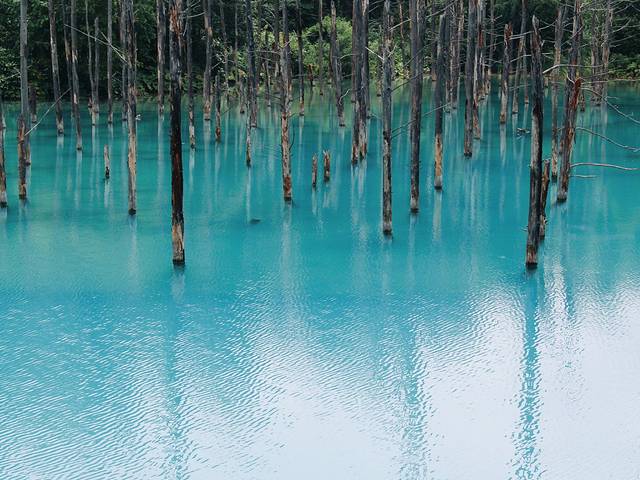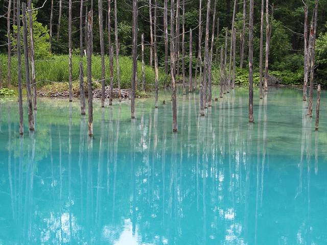 号称 日本 九寨沟 的美瑛青池。。。这是有多大脸敢这么说???